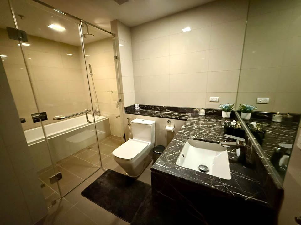Fully furnished with a modern Zen-inspired design with a Shower and Bathtub.