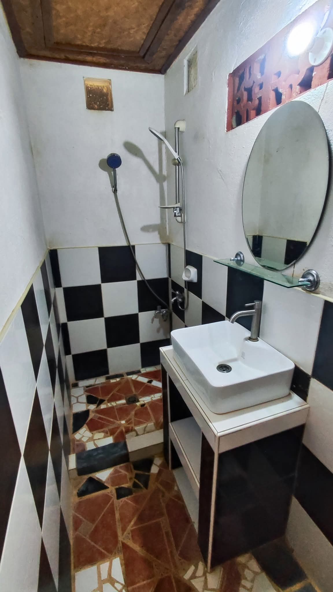 A guest house (native one) with a bed, comfort room and balcony.