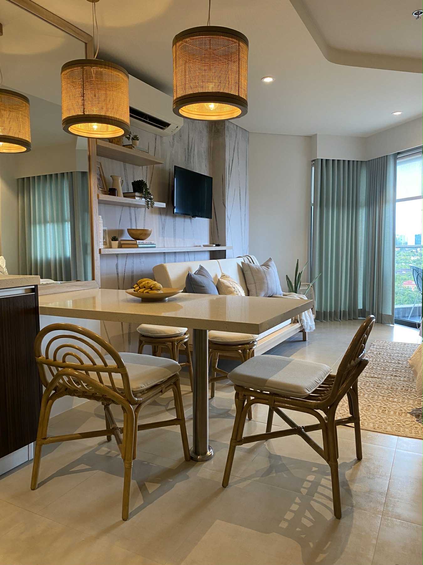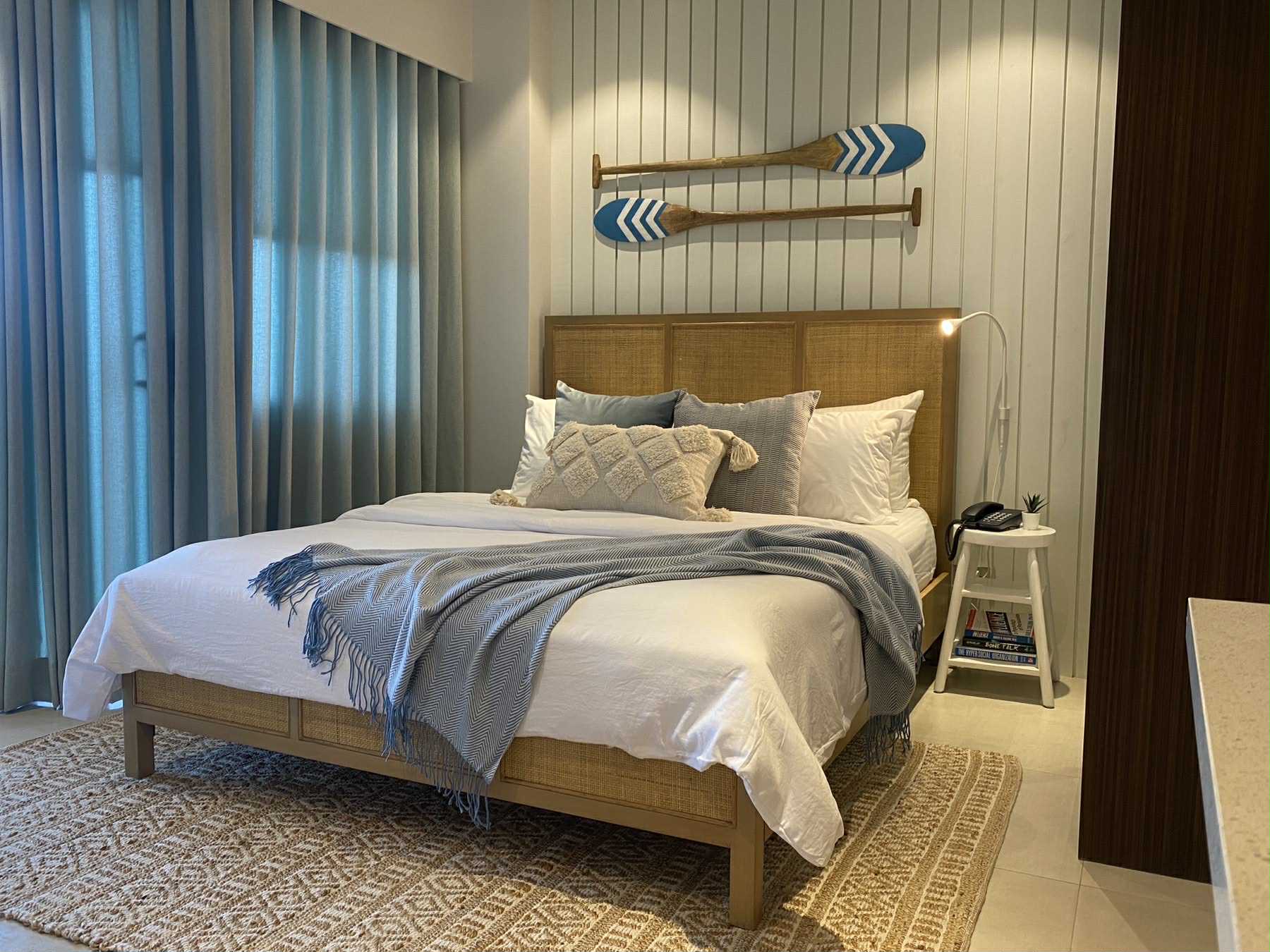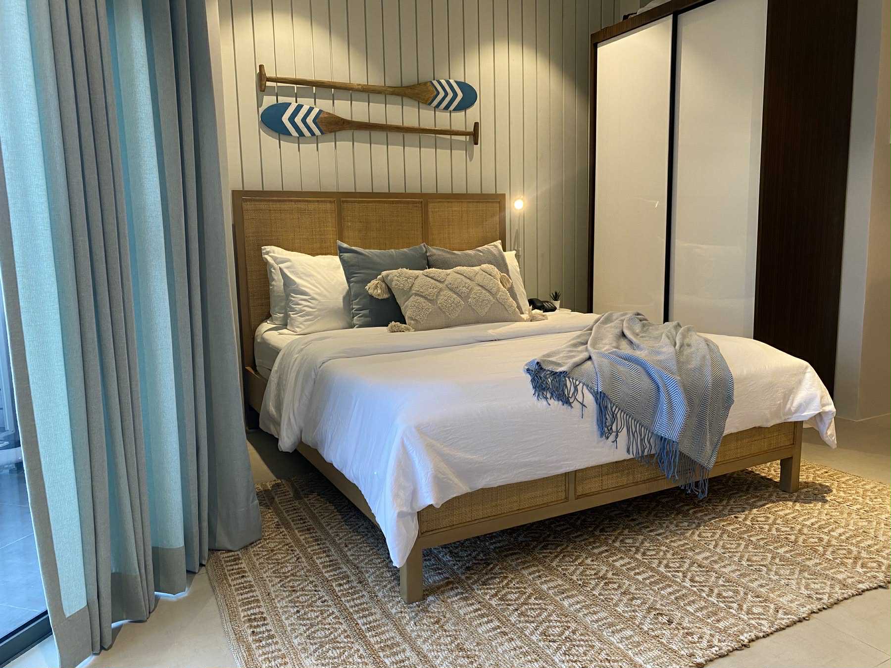 ✨ Beautifully Curated Interiors with soft neutrals, rattan accents, and a relaxing seaside ambiance