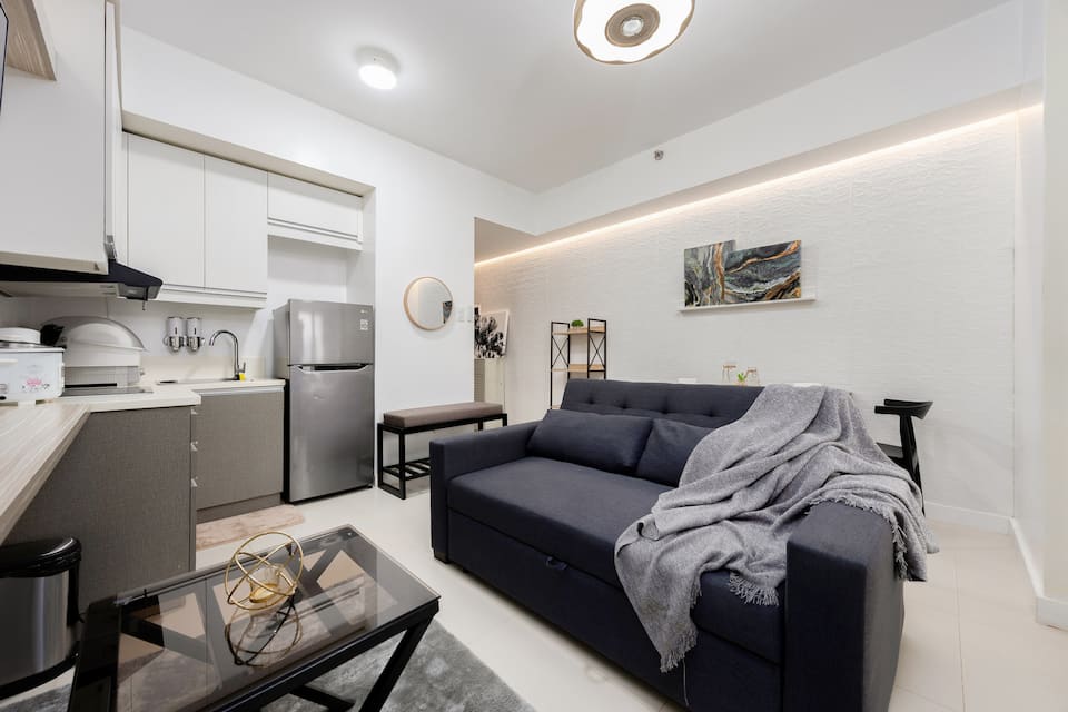 Welcome to your peaceful retreat in the vibrant heart of Metro Cebu! This stylish, minimalist one-bedroom condo apartment offers a modern design that combines comfort and convenience, perfect for solo travelers or couples looking to explore the city.