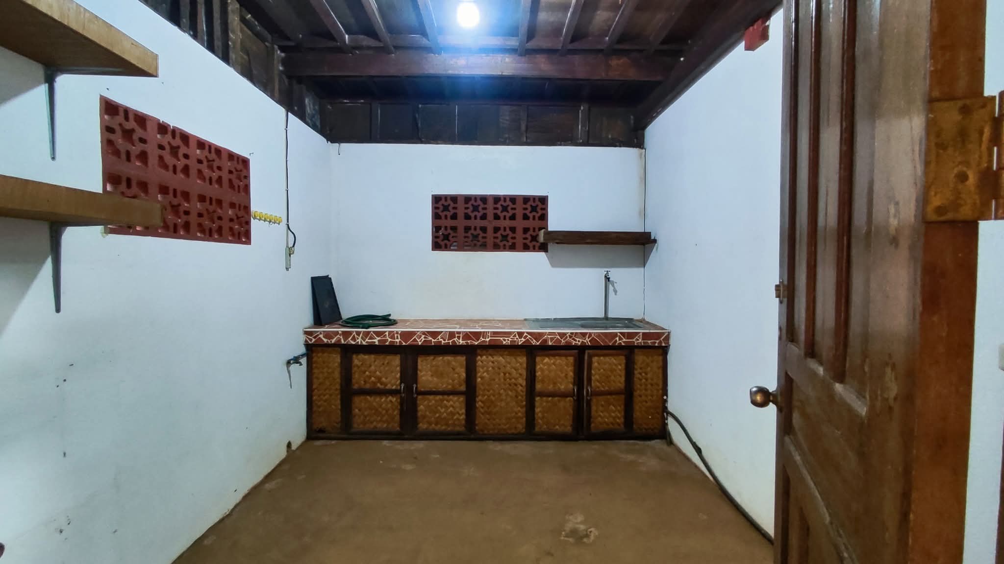 A guest house (native one) with a bed, comfort room and balcony.